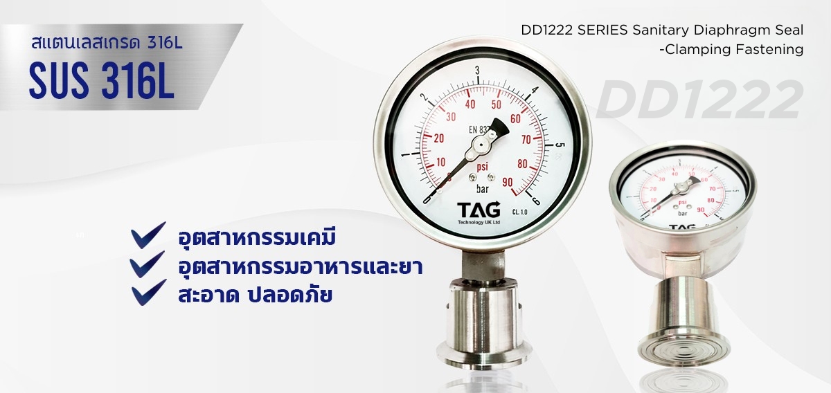 ยกระดับมาตรฐานความสะอาดและความแม่นยำในกระบวนการผลิตด้วย DD1222 SERIES Sanitary Diaphragm Seal หมดความกังวลเรื่องสิ่งปนเปื้อนในระบบ หากคุณอยู่ในอุตสาหกรรมอาหาร เครื่องดื่ม ยา หรือชีวภาพ ที่ต้องการการควบคุมความสะอาดขั้นสูงสุด (Hygienic Process) ขอแนะนำ DD1222 SERIES Sanitary Diaphragm Seal (Clamping Fastening) แบรนด์ TAG Technology ไดอะแฟรมซีลข้อต่อแคลมป์ที่ออกแบบมาเพื่อตอบโจทย์มาตรฐานความปลอดภัยระดับสากลโดยเฉพาะ